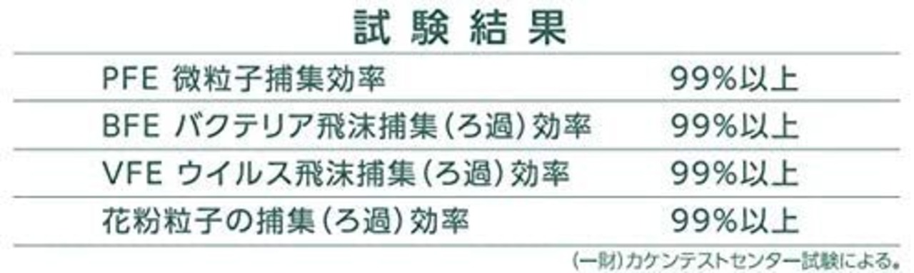 •高機能フィルターBFE・PFE・VFE99%検証済